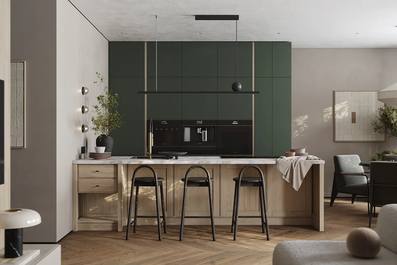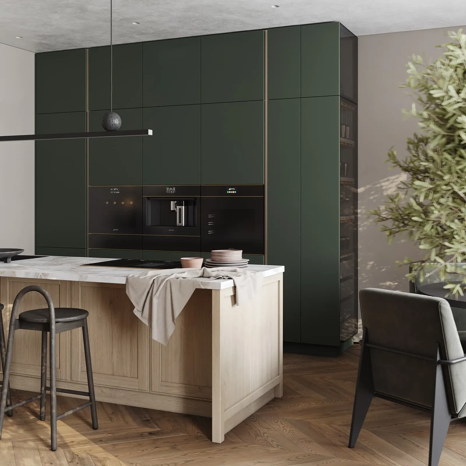 Фасады: Т737 Натуральный дуб, цвет #189 (воскобейц Белый) / ЛМДФ EVOSOFT, цвет Сумрачный Нефрит