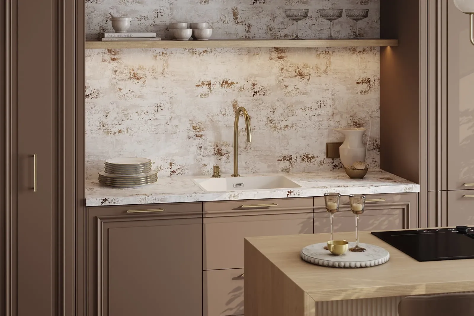 Фасады: Т654 Крашеная МДФ, цвет NCS S 5010-Y70R Матовый / Т646 Крашеная МДФ, цвет NCS S 0500-N Матовый