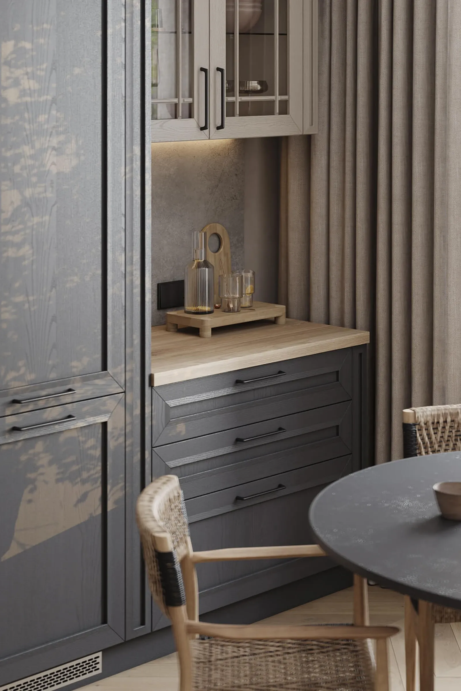 Система выдвижения: LEGRABOX, цвет Серый Орион Матовый; профиль с акцентной подсветкой