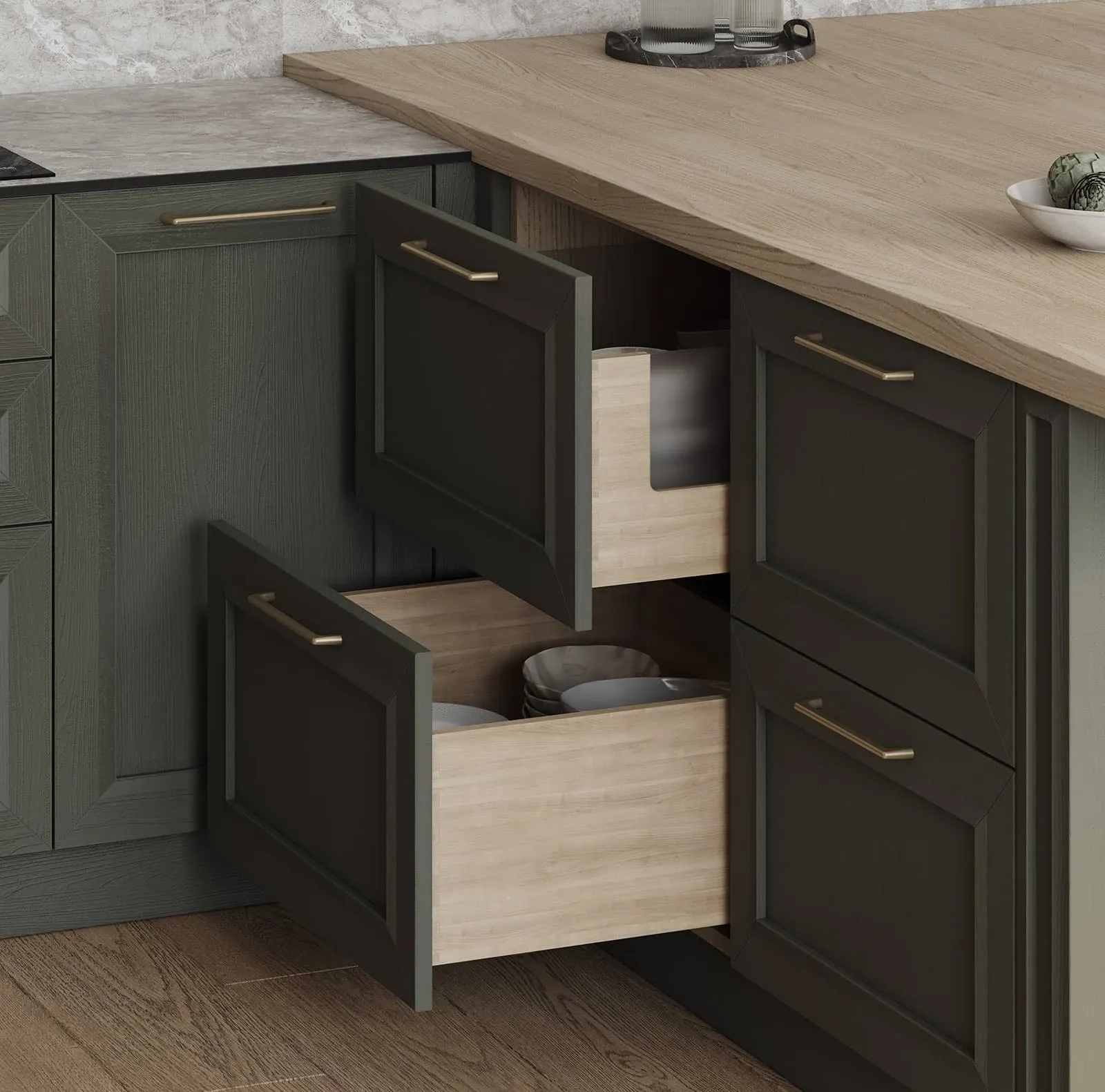 Выдвижные ящики: Натуральная ольха, цвет #183 (масловоск Бесцветный)